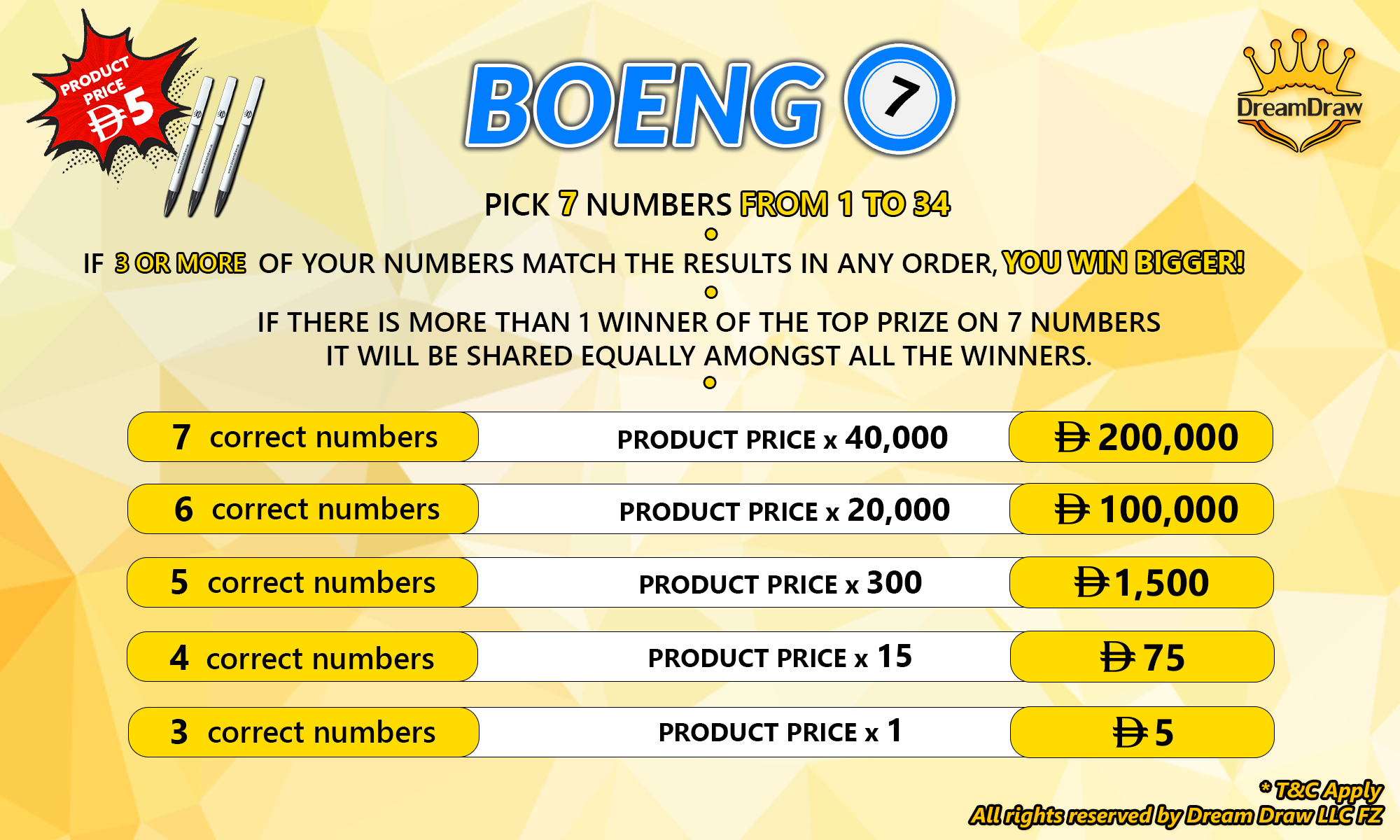 BOENG 7 promises an exciting and rewarding experience for participants who dare to dream big. Purchase your product, pick your numbers, and get ready for the thrill!